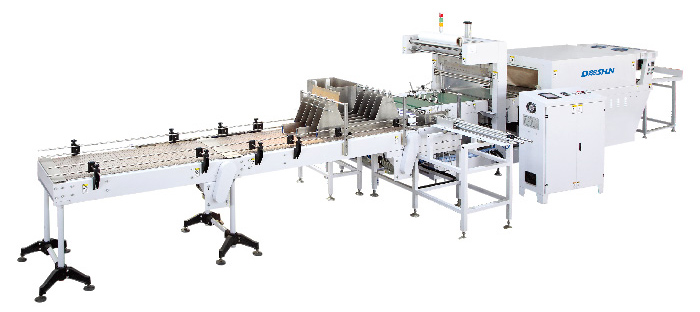 該機為包裝物底部加墊板并套膜包裝的專用設備。